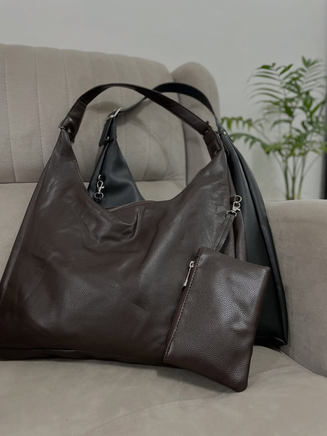 کیف هوبو چرمی با طراحی مینیمال، کیفیت بالا و فضای داخلی کاربردی که هم برای استایل روزانه و هم برای استایل رسمی عالیه. همراه هر کیف یک کیف کوچک زیپی برای کارت، لوازم آرایشی یا وسایل کوچک قرار داده شده.