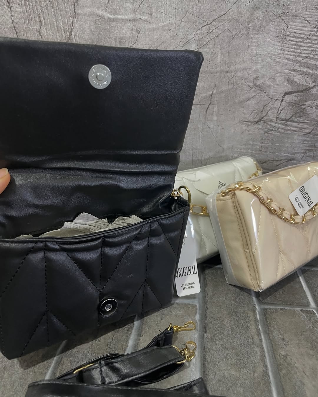 متاسفانه این کالا در حال حاضر موجود نیست. میتوانید از طریق لیست بالای صفحه، از محصولات مشابه این کالا دیدن نمایید.کیفای رنگی رنگی تقدیم نگاهتون مینی بگ های زیبا ونقلی که گوشی هم داخلش جامیشه بندبلنددوشی داره گلدوزی شده قی:فقط و فقط ۲۲۰تومن #