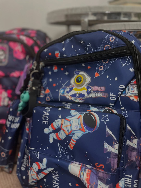 آماده برای شروع یک سال پر از ماجراجویی! کولهپشتیهای جدید با طراحیهای خاص: یکی پر از رنگ و طرحهای کیوت دیگری با دنیای بیپایان فضا و ستارهها کوله پشتی دخترونه کرومی: رنگ اصلی: سرمهای تیره با طرح عروسک کرومی صورتی • طرح: خرسهای کرومی صورتی با المانهای کیوت و ستارهای • دارای جیبهای بزرگ و زیپهای چندلایه • بند نگهدارنده و سگک پلاستیکی زیرین ۰ دارای جامدادی ست/وآویز طرح کرومی کوله پشتی پسرونه: • رنگ اصلی: سرمهای تیره با طرح فضایی • طرح: فضانورد، سفینه و نوشتههایی مثل “SPACE” و “OUT OF THIS WORLD” • جیب جلویی بزرگ با زیپ • دارای آویز (جاکلیدی) و جامدادی ست • فضای داخلی جادار برای کتاب و دفتر ۰ چراغ دار/با ضربه روشن میشود مناسب برای مدرسه، سفر و هر روز پرانرژی بچهها کدوم طرح بیشتر به دلتون نشست؟