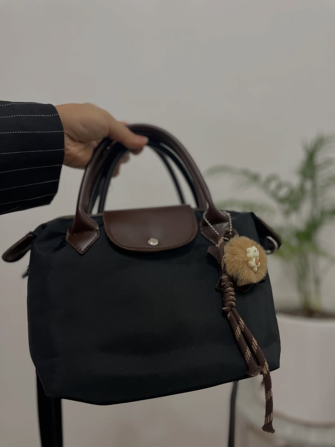 کیف لانگ چمپ متوسط با دسته مشکی و قهوهای